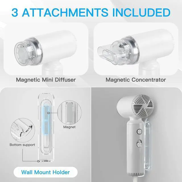 Attachments IncludedThe Webeauty hair dryer comes with three attachments: a diffuser for curly hair, a smooth concentrator, and an adhesive wall mount holder. Both magnetic nozzles rotate 360° for easy installation and adjustable wind direction, facilitating precise styling.