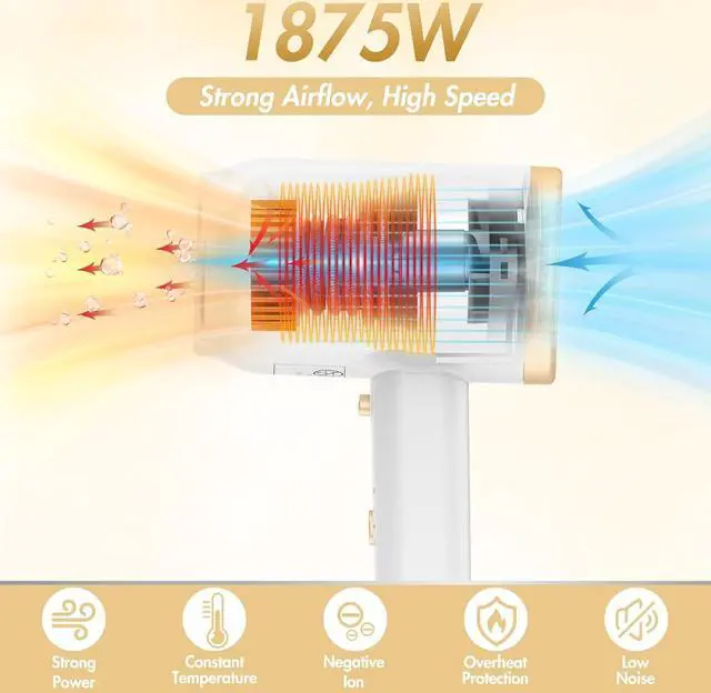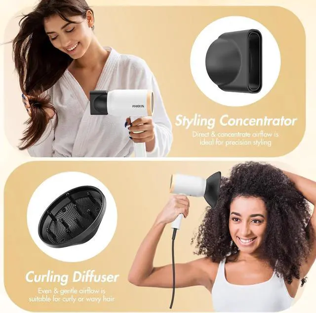 1875 Watt Powerful Motor for Fast DryingANIEKIN hair dryer is equipped with a 1875W power and high rotating speed to output strong and smooth airflow effortlessly. Combined with the constant temperature, the blow dryer ensures fast drying and styling to provide efficient protection and optimal care for your hair.