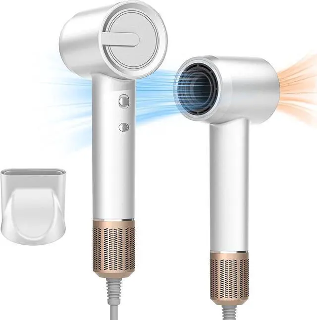 Delicate Design & Easy to OperateOur blow dryer is carefully crafted to correspond to a precise size and right proportion which is ergonomics perfect. The versatile heat & speed settings offers 3 heat settings (cool air/104/158) and 2 speed settings which can meet different scenarios. The 3-color LED Ring Light can provide a clear visual experience that green is cold air, orange is warm air and red is hot air