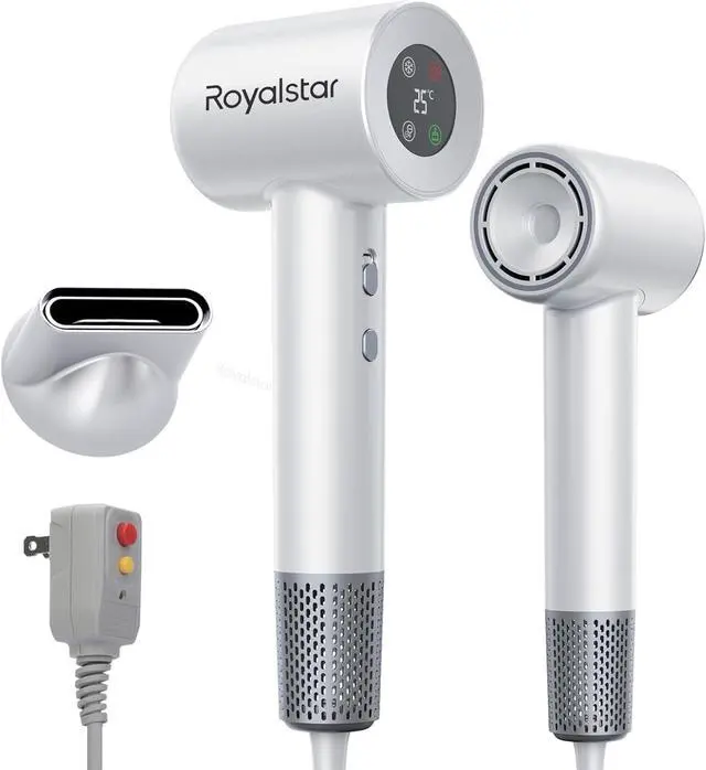 Fast Drying: Royalstar hair blow dryer is equipped with a 150000 RPM high-speed brushless motor and the wind speed up to 36 m/s, It takes only 3 minutes to dry hair, which strong airflow can dry your hair in a short time and is 6x faster than traditional hair dryers.