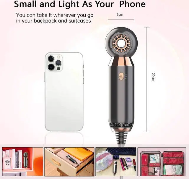 Lightweight: The compact blow dryer is unique and gorgeous design, the handle size of traditional hair dryers, and is extremely portable, When you have it, belive you will love it, and ideal gift choice.
