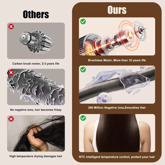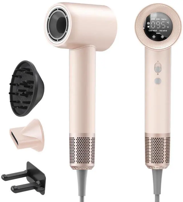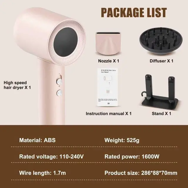Powerful High Speed Motor This professional hair dryer is equipped with a 160,000 rpm high-speed brushless motor, delivering a powerful airflow of up to 65 m/s for fast drying and efficient styling. It's ideal for home and salon use.
