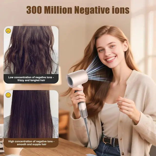 Constant Temperature Ionic Function This hair dryer releases up to 300 million negative ions to repair and condition hair. Hairdryer makes it soft and shiny and smooths frizz. It's also perfect as a curling iron for defined, voluminous curls.