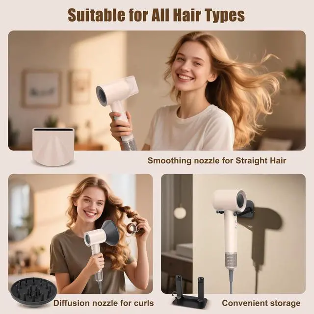 Diffuser and Concentrator Nozzle The hair dryer features a concentrator nozzle for targeted airflow and precise styling, as well as a curl diffuser that evenly distributes air to reduce heat damage and add volume and definition to curls.