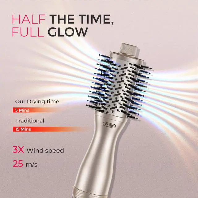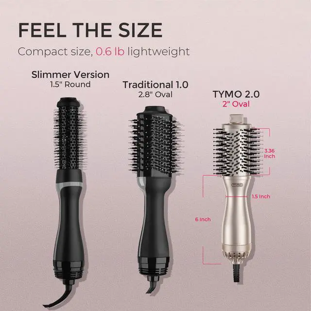 TYMO dryer brush features a 2 inches oval barrel and measures approximately 10.9 inches in total length. It is designed with a 1.5 inches ergonomic grip for comfortable holding.