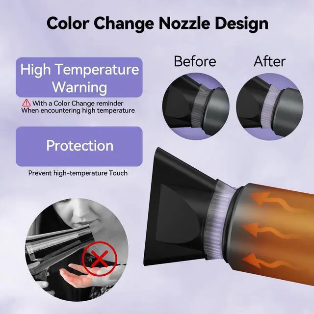 Smart 3 Temperature SettingsEasily customize your style with 3 temperature settings (50°C/122°F 80°C/176°F 110°C/230°F) and 3 speed levels. Featuring an innovative LED light ring design, it can display different modes (red indicates temperature, green indicates wind speed), and a memory function that recalls your previous settings.The ion hair dryer is ideal for various hair types, including curly, thick, and fine hair.