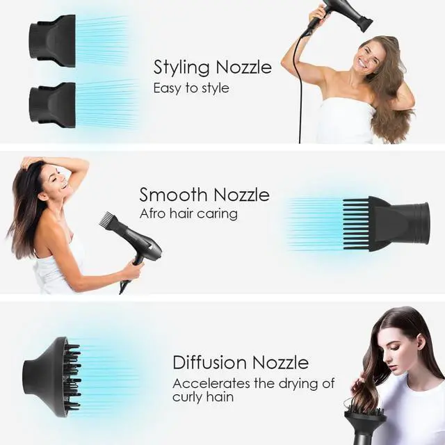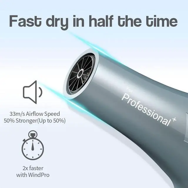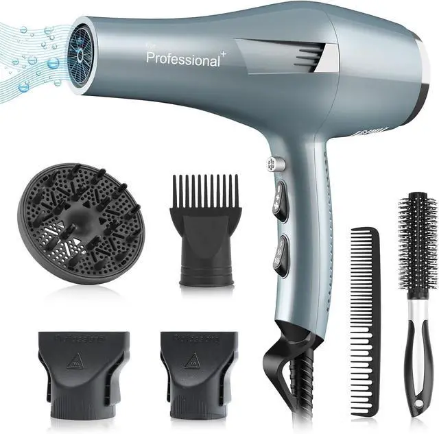 Faszin Ionic Salon Hair Dryer, Professional Blow Dryer AC Motor Fast Drying with 2 Speed, 3 Heat Setting, Cool Button, with Diffuser, Nozzle, Concentrator Comb for Curly & Straight Hair-Gray