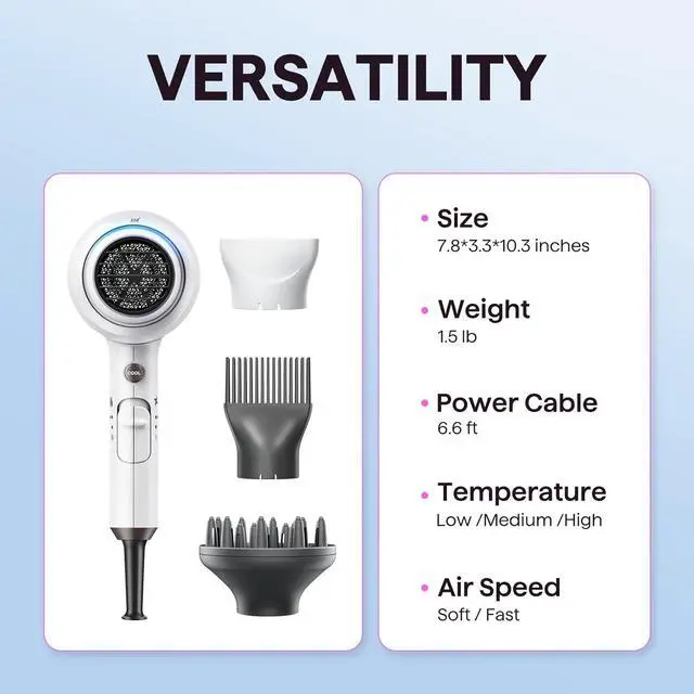3 Temperature Settings: With three temperature settings and two airflow speeds (including a cool air option), this device offers customizable versatility for every hair type, turning your daily hair care routine into an effortless, salon-worthy experience.