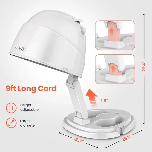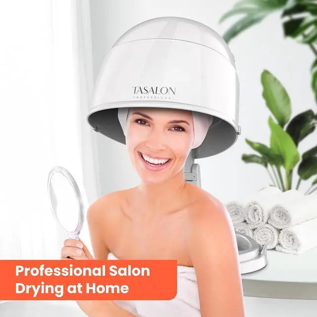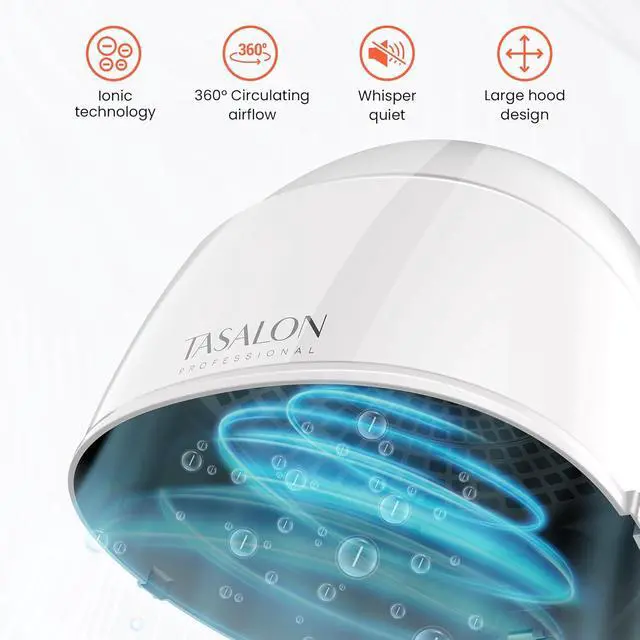 TASALON Ionic Hooded Dryer - 1875W Bonnet Dryer, 3 Heating Settings, Sit Under for Home and Salon, Portable Hair Dryer with Hood, Height Adjustable Hooded Hair Dryer- White