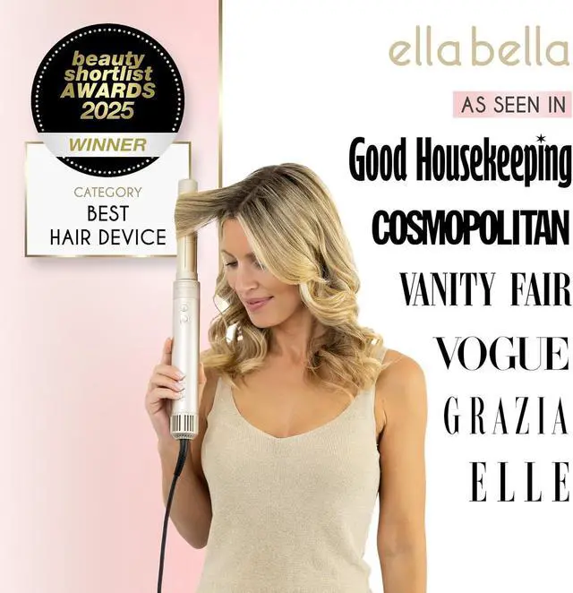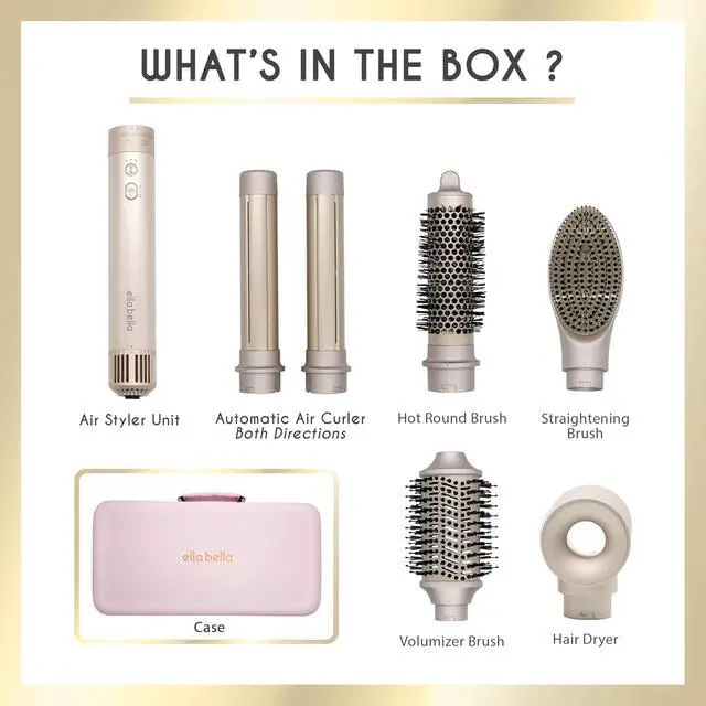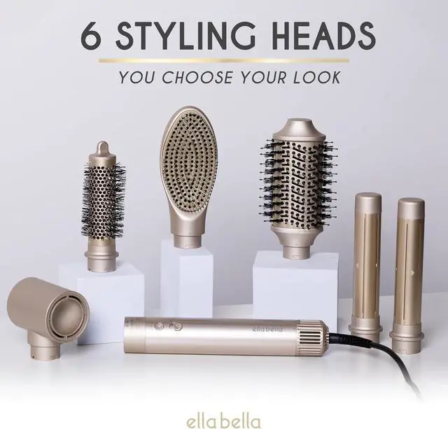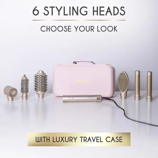 ELLA BELLA® 6 in 1 Professional Hot Air Styler Powerful Hair Dryer & Straightener Set Styling Without Heat Damage Fast Drying Curling Volumizing Straightening Includes Protective Travel Case