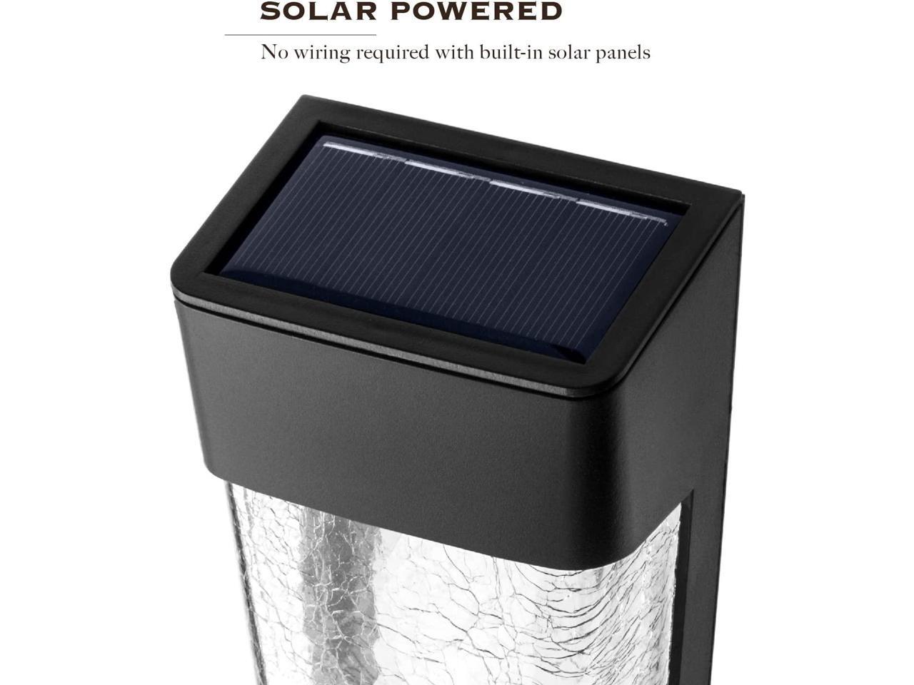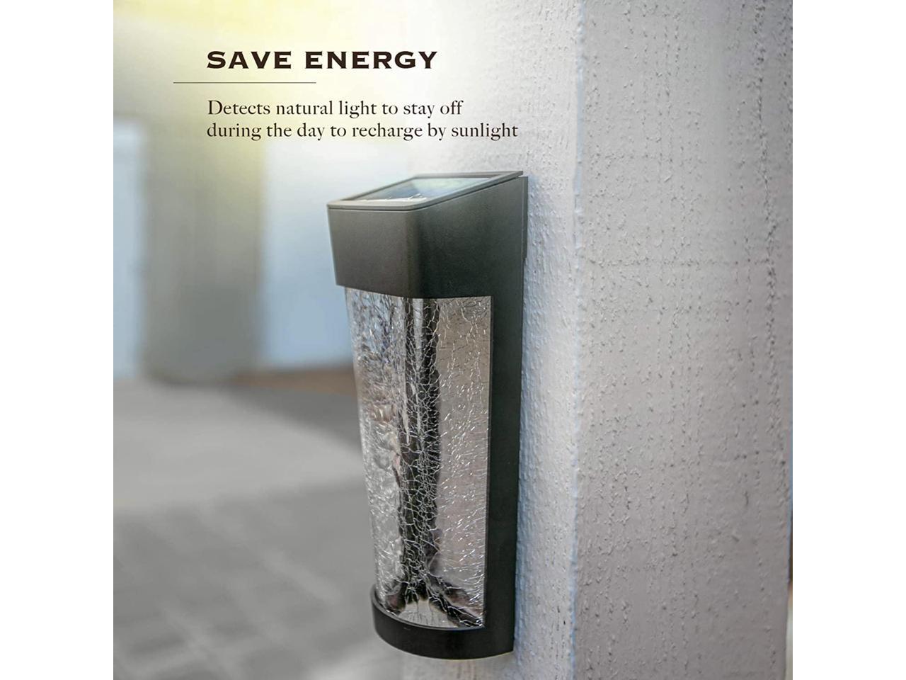 - SOLAR POWERED - Let the sun do the work with the decorative solar outdoor wall lights from featuring long-lasting rechargeable LED lights with built-in crystalline solar panels to upgrade your home with elegant accent lighting.