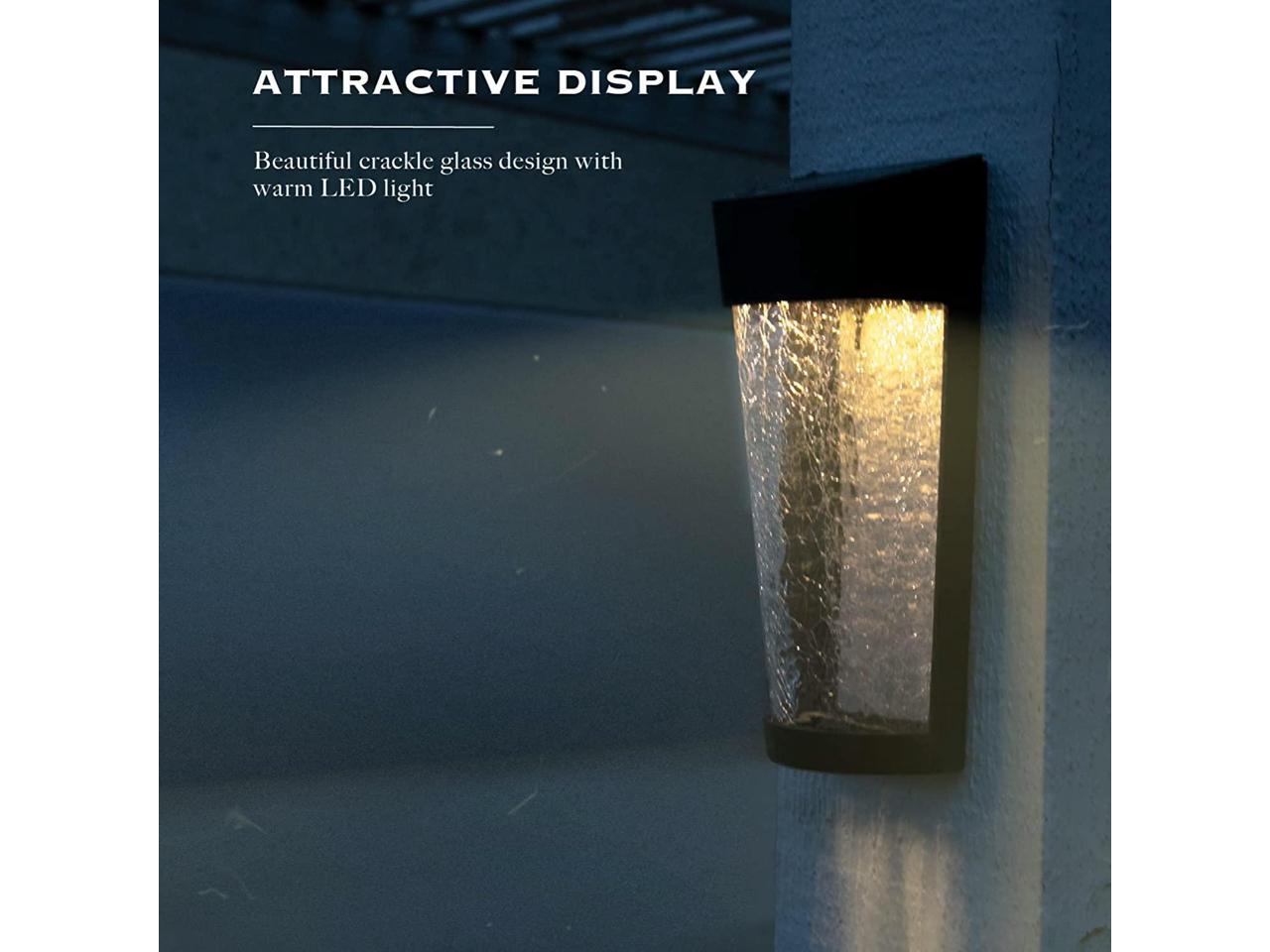 Landia Home Solar Wall Light - Decorative Crackle Glass Shade LED Outdoor Wall Mounted Lights, 2-Pack