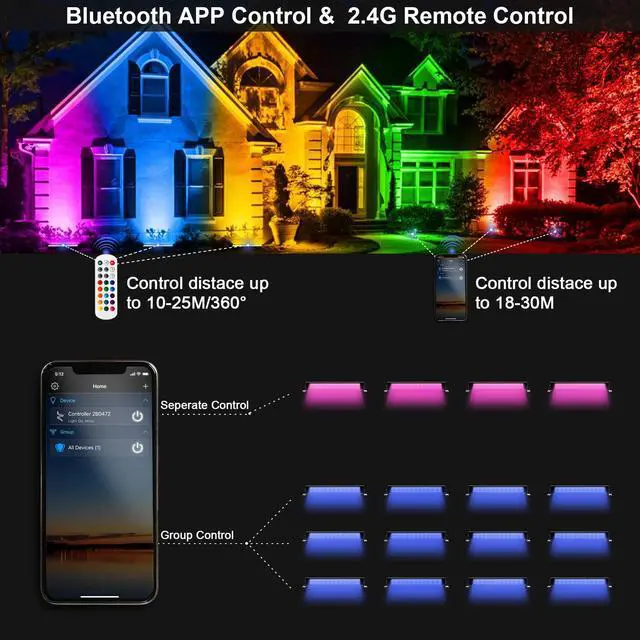 • Smart RGB Light bar The smart RGB led stage lights can change color to the rhythm of your music and your voice. Once the app is successfully connected to the RGB floodlight, you can use the app's music or microphone function to play your favorite music, and the light will change to the rhythm of the music. RGB floodlights are perfect for homes, gardens, bars, game rooms, parties, discos, stages, as well as Halloween and Christmas lighting.
