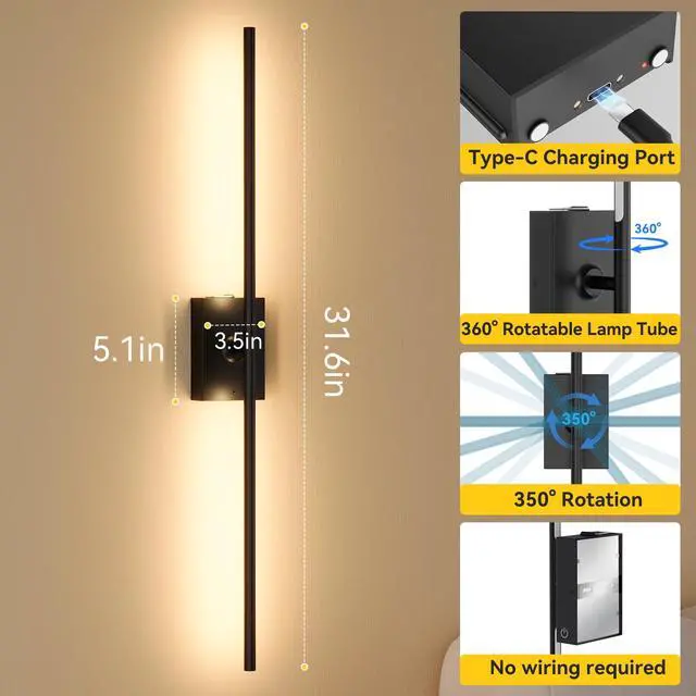 Slim and black classic farbe, suitable for modern, classic, and other interior styles, they enhance the overall look, suitable for living rooms, bedrooms, hallways, entryways, stairs, fireplaces, TV walls, pictures, and more. Wall light size: 31.6 inches height, 3.5 inches width. Please check the size you need before payment
