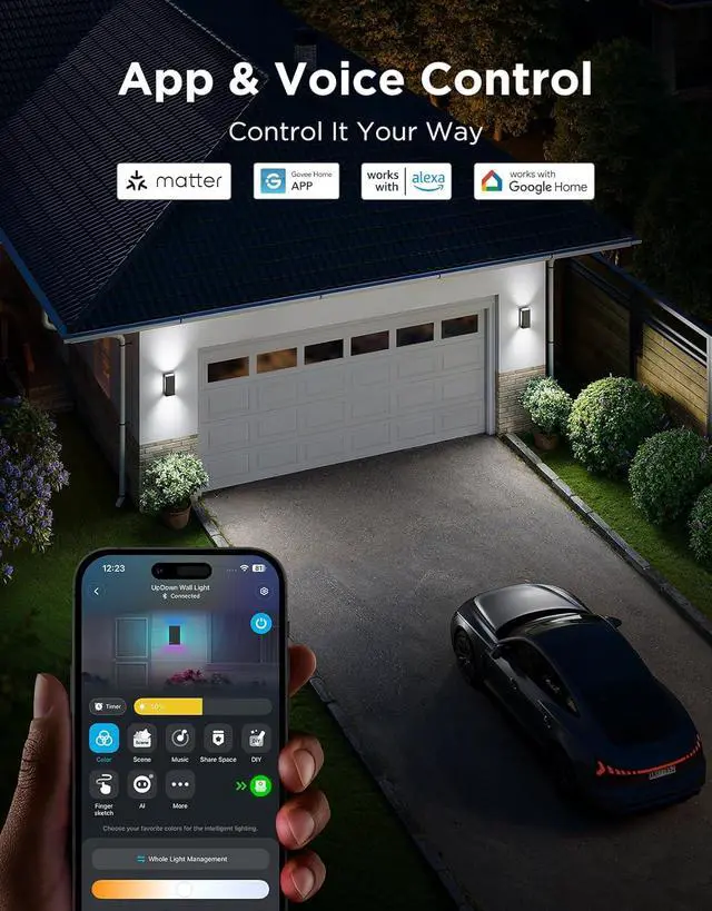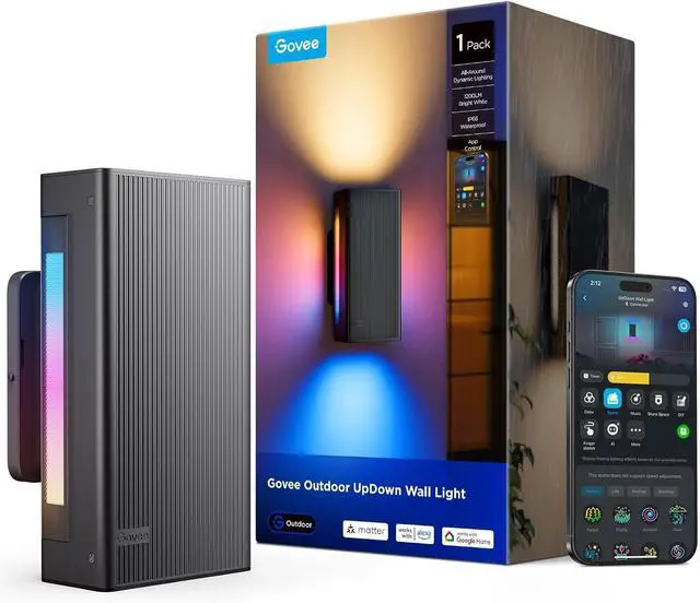 All-Around Dynamic Lighting: Govee outdoor wall lights deliver seamless lighting effects equipped with smooth color transitions. Featuring up/down RGBWW and flanking RGBIC ambient lighting, it offers 16 million color options for outdoor decor.