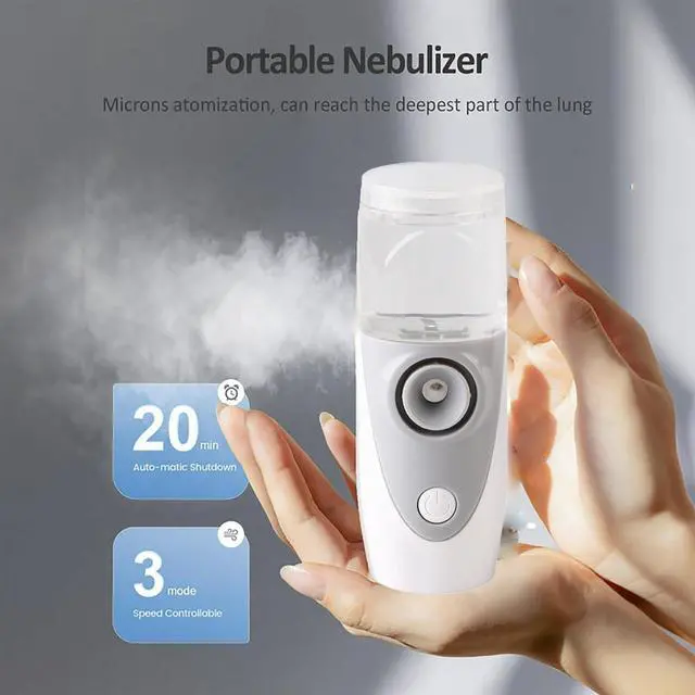 - Our portable nebulizer is small in size and light in weight. It is suitable for use at home or in the office, and can also be carried with you when traveling on business. It can be used with battery or USB cable, which is very convenient.