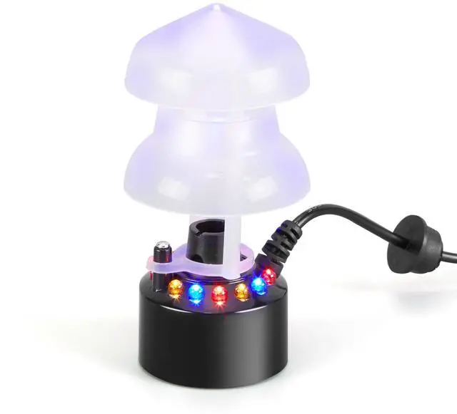 It produces so much mist, and it keeps my humidity levels high while also adding a colorful touch.