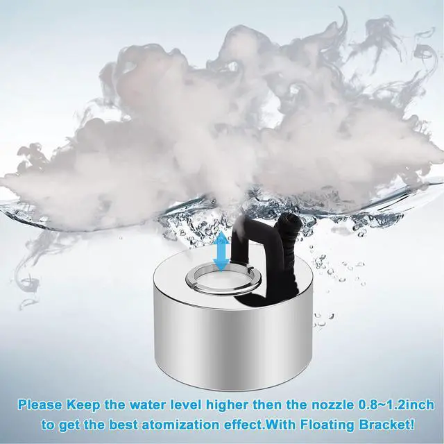 Easy, simple, and environmentally safe to use. Place the ultrasonic mist maker in the water with the front facing up, and plug in the power supply to create mist. When the item is short of water during operation, it will be powered off automatically, safe and reliable