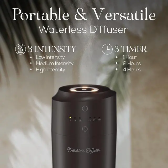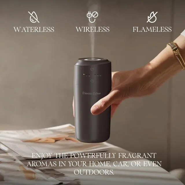 Wireless, Waterless, Flameless: This waterless diffusers transform essential oils from their liquid state to an extremely fine mist, without the need to add water or plug in your device, which means you can experience their effects no matter where you are. Enjoy these powerfully fragrant aromas in your home, car, or even outdoors.