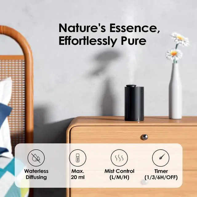 Affordable Waterless Essential Oil Diffuser Our patented waterless diffusing technology directly converts your favorite oils into a fine nano mist without heat or water. Compared to traditional ultrasonic diffusers, this is a natural, more convenient, and safer choice