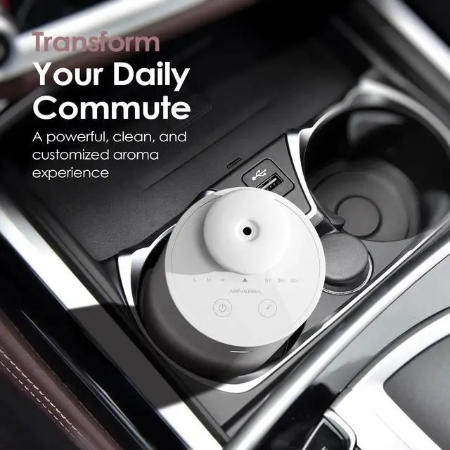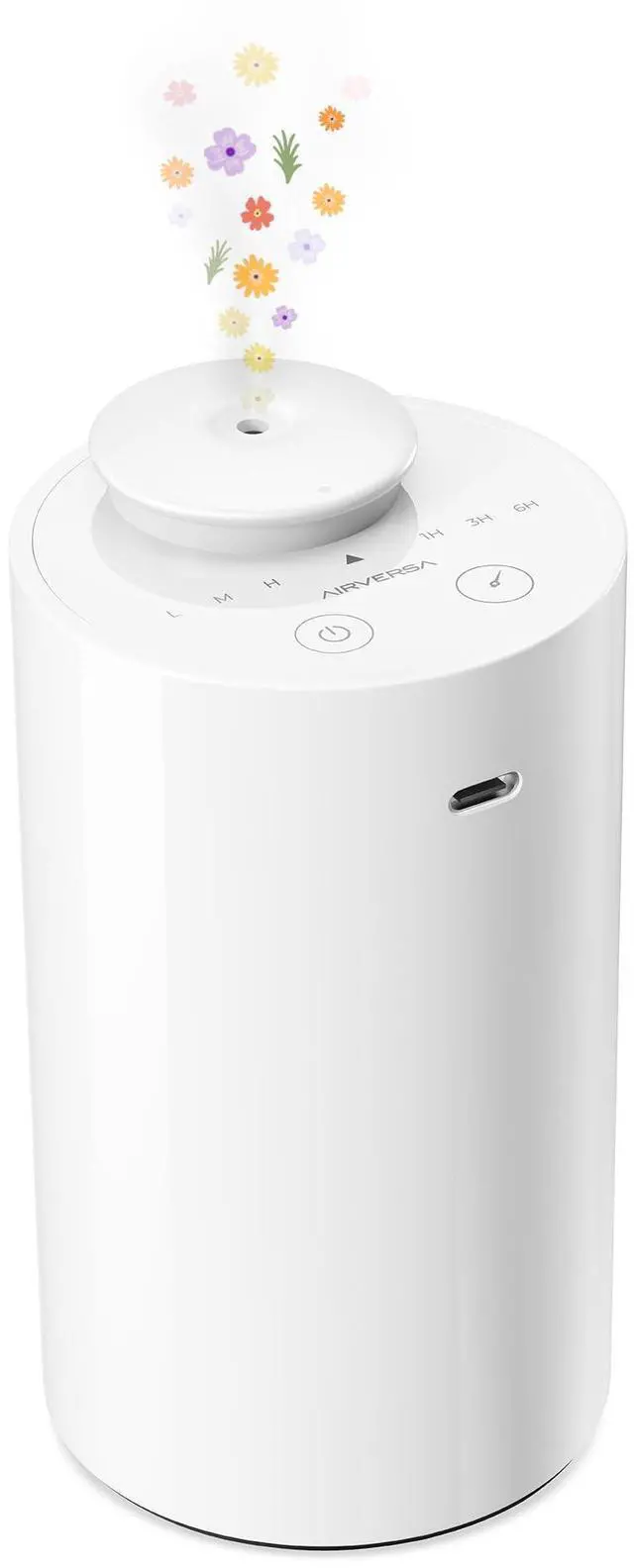 Airversa Waterless Diffuser for Essential Oil, Car Diffsuer, Battery Operated Nebulizer, 0.7 Fl Oz/ 20mL, Mini Scent Air Machine, 3 Timers & 3 Mist Levels for Home, Room, Car, Office - AN6 White