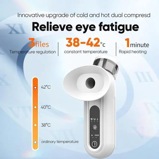 Hot & Cold CompressRelieve Eye Fatigue. Three adjustable temperature levels with rapid 1-minute heating help soothe tired eyes and keep dryness at bay.