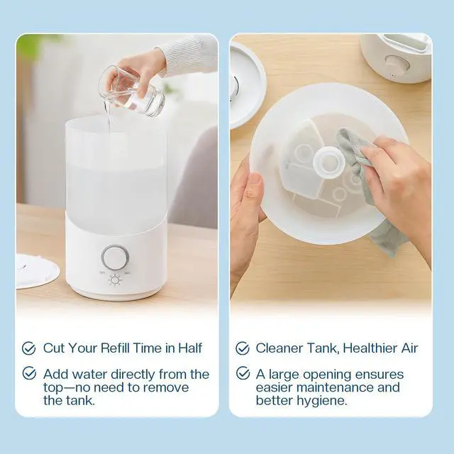 Top-Fill Design for Easy Refilling Easily refill the 3L water tank by removing the top cover. No need to flip or disassemblejust pour in water and keep your hands dry.