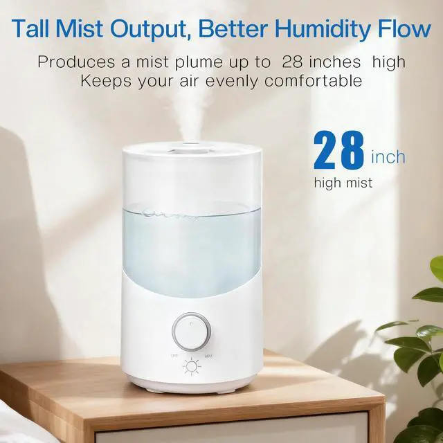 Long-Lasting Moisture for Up to 25 Hours The large 3L tank provides continuous mist for bedrooms up to 300 sq. ft. Ideal for overnight use with fewer refills.