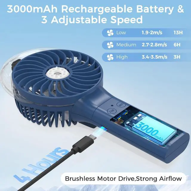 YOUR DISNEY & BEACH SURVIVAL GEAR: Theme park lines and beach sun are unforgiving. With a 3000mAh rechargeable battery and leak-proof water tank, this portable handheld fan keeps you and your kids cool, calm, and meltdown-free during long outdoor days