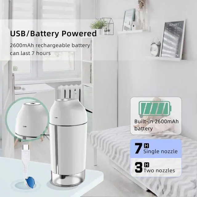Most humidifiers are big or can not be placed in the desired position by the limitation of wires. if you are concerned about the above inconvenience, the HandFan humidifier is the best choice. the battery-powered feature means it can be put on anywhere for humidification, moreover, it's also lightweight and can be easily carried out for travel.