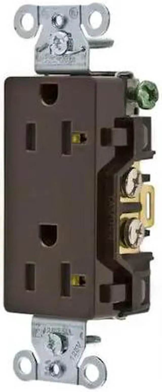Receptacle, Connection Orientation Straight, Cover Type No Cover, Current Rating 20 A, GFCI No, Grounding Grounded, Housing Color Brown, Housing Material Nylon, Mount Type Flush, NEMA Enclosure Rating 1, NEMA Receptacle Configuration 5-20R, Number of Gangs 1, Number of Poles 2, Number of Wires 3, Phase Single, Polarized Yes, Receptacle Type Decorator Duplex, Standards CSA Certified C 22.2, Federal Specification W-C-596, NEMA WD-6, UL 498, Voltage Rating 125V AC