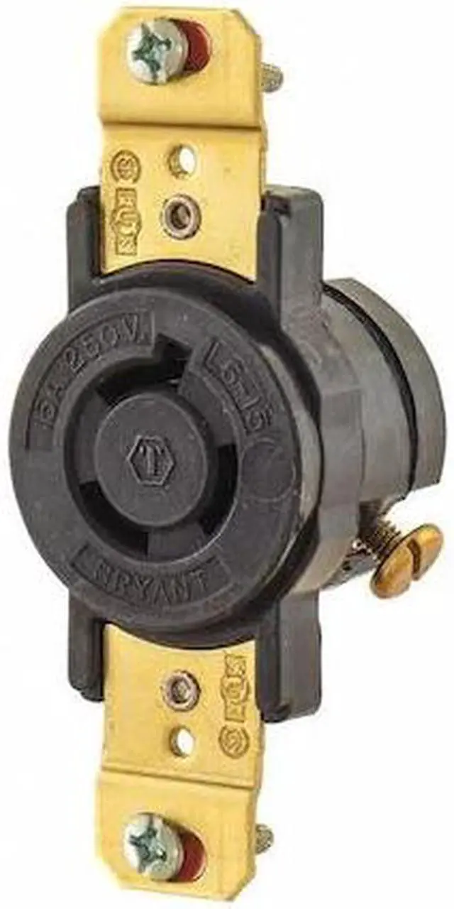 Nylon device is chemical- and impact-resistant. Incorporates a true, one-piece grounding system. Plugs and Connectors are polarized and moisture-resistant. Receptacles are single locking. Locking Receptacle, Blk, 250VAC, 1.5 HP, 15A