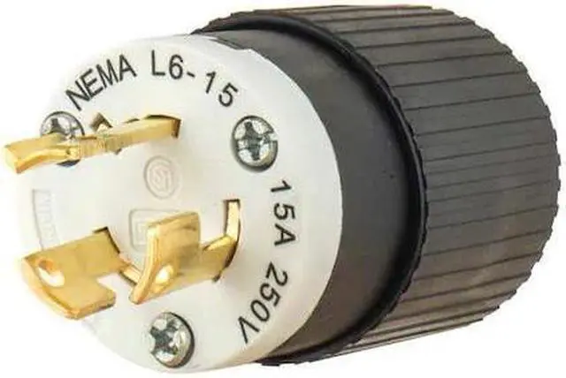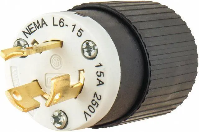 Nylon device is chemical- and impact-resistant. Incorporates a true, one-piece grounding system. Plugs and Connectors are polarized and moisture-resistant. Receptacles are single locking. Locking Plug, Black/Wht, 250VAC, 0.5 HP, 15A