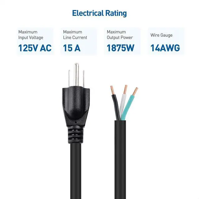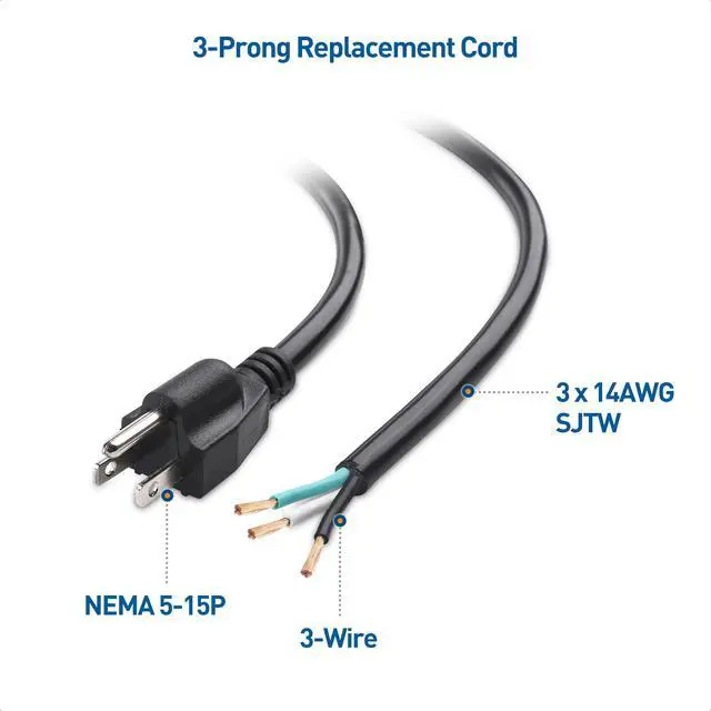 The Cable Matters 14AWG 3-Prong Replacement Cord is the ideal solution to repair a damaged or failed plug on common household appliances, power tools, and other household equipment. Avoid costly appliance replacement by repairing the plug yourself with the easy-to-install replacement plug.