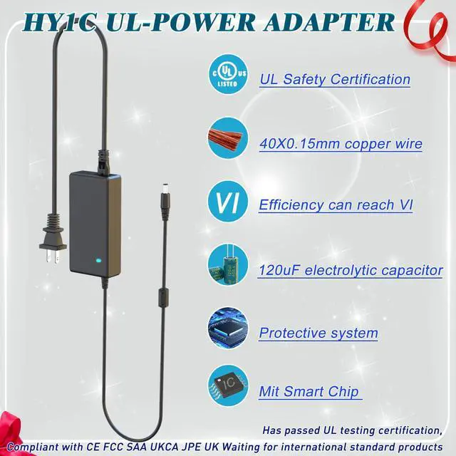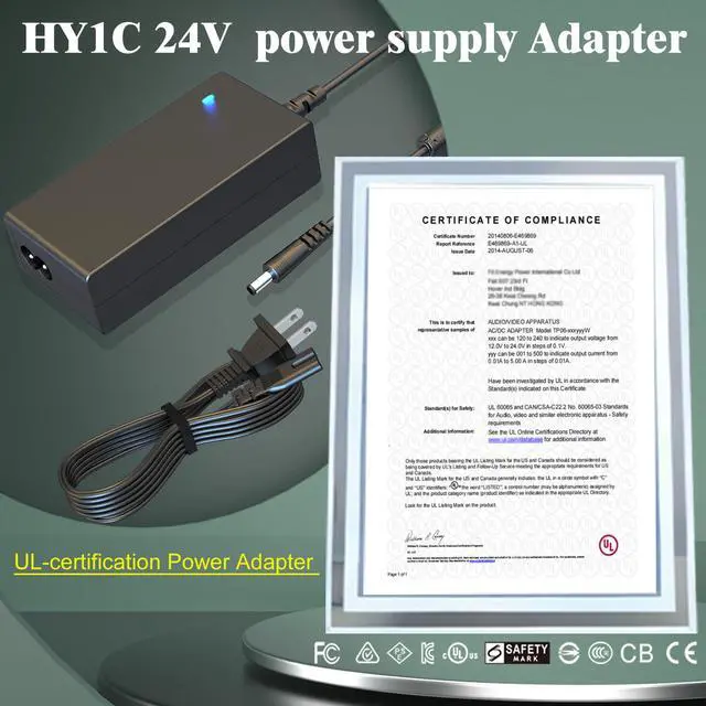 HY1C 24V 2.5A Power Supply Adapter, Through UL certification, the product is safe and stable, Multiple protection, 9FT Power Cord, Protect your family and equipment
