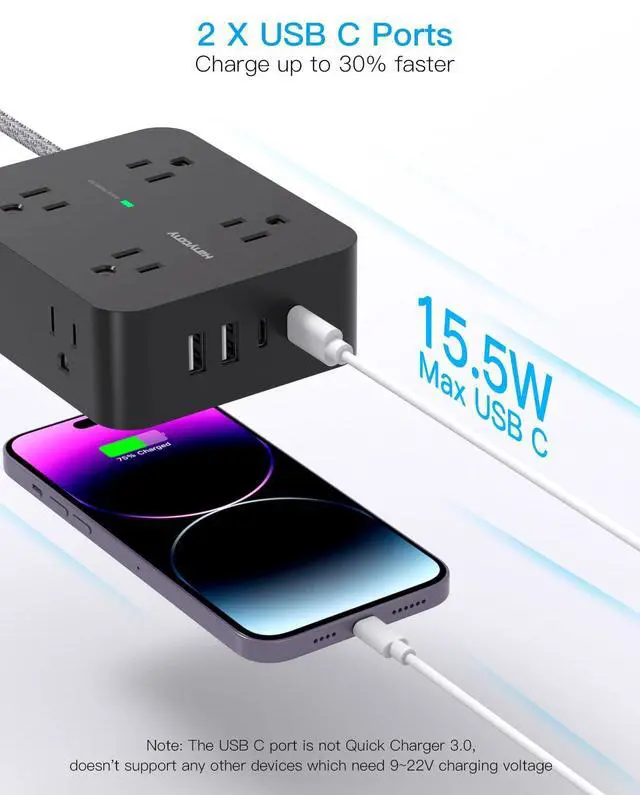 HANYCONY Surge Protector Power Strip with USB C