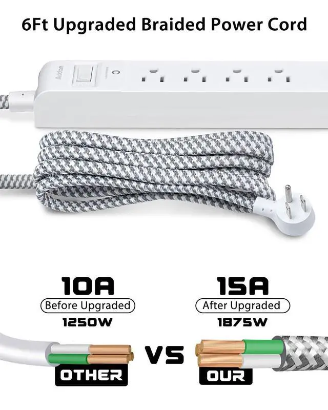 The braided power cord is not easy to deform, thick copper wires, more efficiency power output, low heat, so durable and more safety than other power cord.