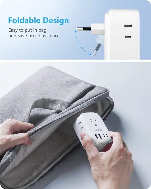 At size 5.8*4.1*7.9 cm, the European collapsible travel adapter is for maximum space-saving in your travel bag.