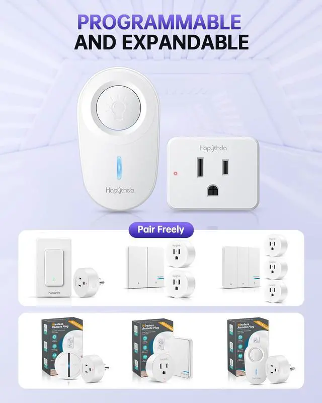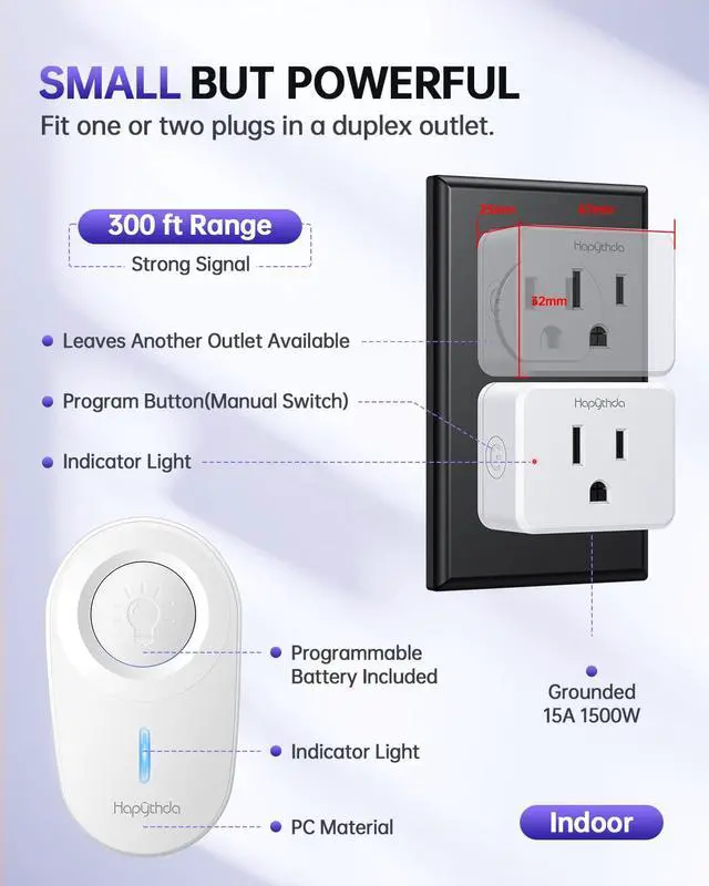 Easy to UseThe pre-programmed remote outlet switch wireless requires no wiring, simply plug it into a wall outlet for immediate use; just press the on/off button on the remote switch to easily control hard-to-reach appliances next to the sofa and bed stand; ideal for the elderly, pregnant women and those with limited mobility, bringing convenience.