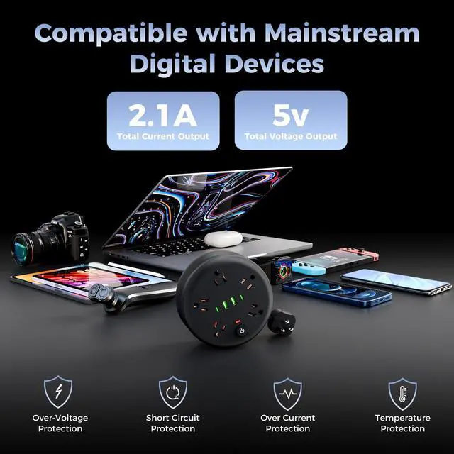 Ideal for TravelNo matter if you're staying in a hotel, waiting at an airport, or enjoying a camping trip, this retractable travel power strip is your perfect companion. It allows you to manage your device charging efficiently, saving your time and letting you focus on the fun of your travels.