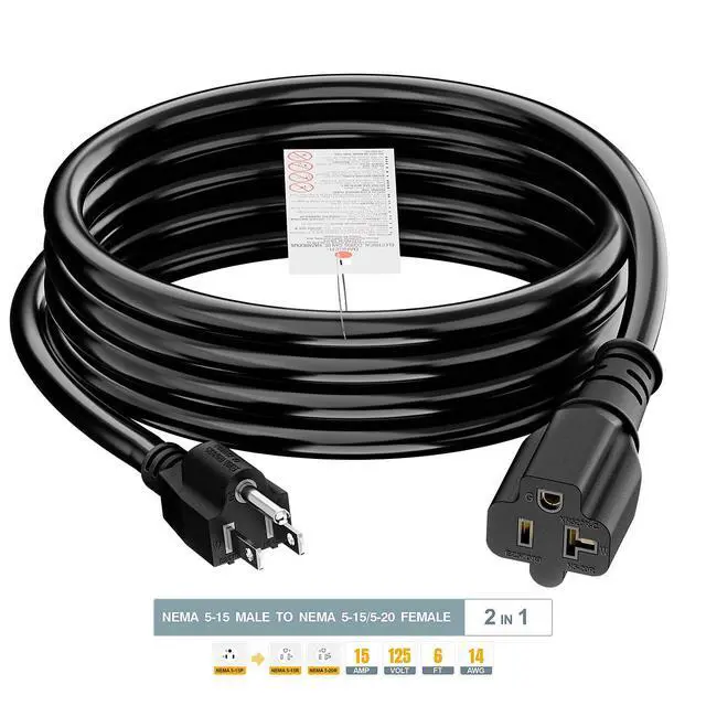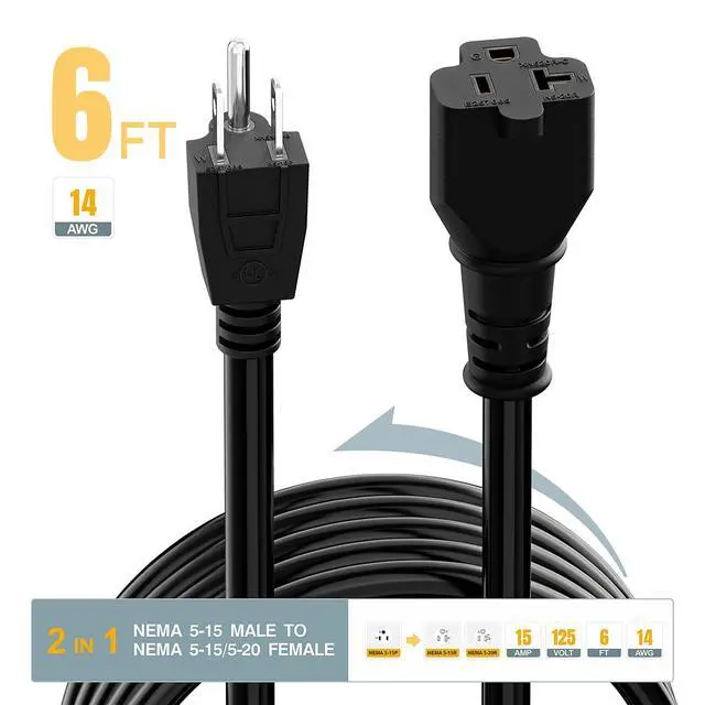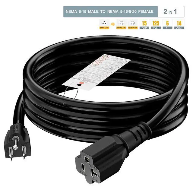 . 6FT long NEMA 5-15P 15AMP Male to NEMA 5-15R / NEMA 5-20R Female AC Extension Cord