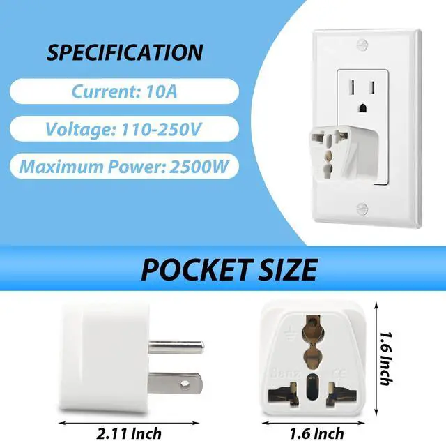 - You will receive a total of 3-pieces of compact EU to US plug adapter. Use three foreign electronic devices at the same time or share them with your friends.