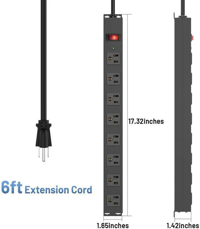| Power Strip Dimensions LxWxH | 17.32in x 1.65in x 1.42in |