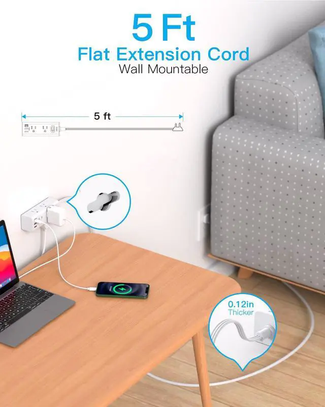 One Beat power strip flat plug could be easily hide in the back the furniture and refrigerator, which can maximum save your outlet space occupied.