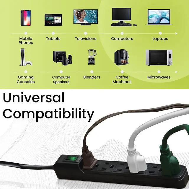 6 Outlet Surge Protector: Provides 90 joules of simultaneous protection against electrical power surges for its 6 adaptors, all at once, making it ideal for almost any indoor electrical appliances.