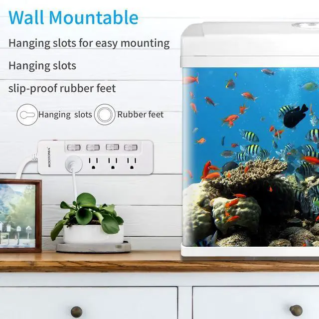 ROOTOMA Surge Protector Power Strip with Circuit Breaker and Multi outlet Individual Switches 6ft UL 14AWG Heavy Duty Power Cord for Home Aquarium Office Travel Hotel Work More(4-outlet 6 ft cord)