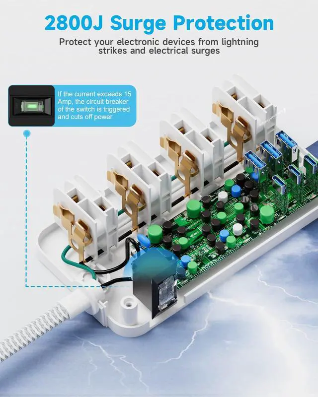 With 13Amp overload-switch, this surge protector ensures overload protection for safe appliance use.