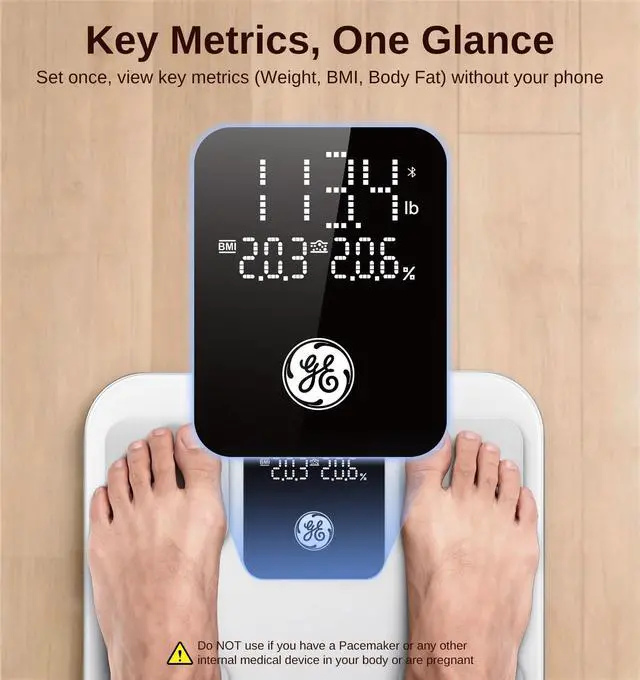 Experience instant clarity with every weigh-in. Step on, and see your key metricsWeight, BMI, and Body Fatimmediately on the large, ultra-clear LED display, no phone needed after a simple one-time setup.