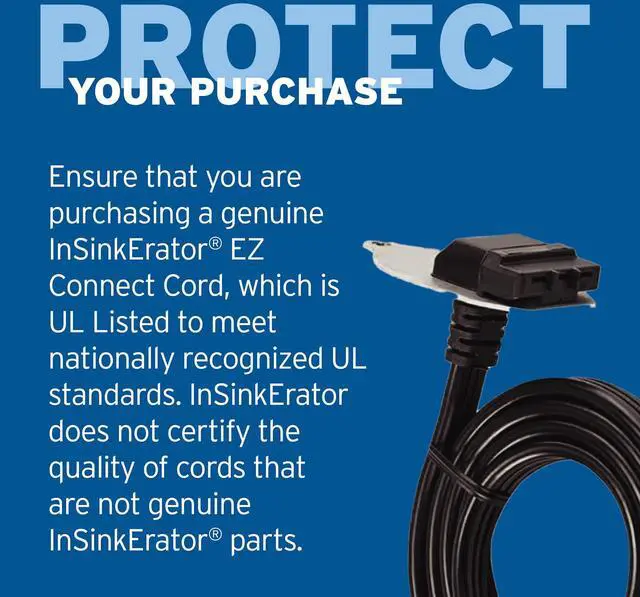 The INSINKERATOR EZ Connect Cord offers a fast, easy, and convenient way to connect a power cord to EZ Connect INSINKERATOR garbage disposals so they quickly can be plugged into wall outlets under the kitchen sink. Compatible with INSINKERATOR EZ Connect Power and Advanced Series continuous feed garbage disposer models, the UL-Listed EZ Connect Cord inserts directly into the bottom of the sink disposal in a few simple steps, eliminating the need to connect wires when attaching the power cord to the disposer. Once installed, the sink garbage disposal power cord plugs into a standard wall outlet. The EZ Connect Cord is one of the many ways that INSINKERATOR helps to make installing your garbage disposal easy. Your kitchen is the heart of your home, where you gather with family and other loved ones. The perfect complement to every kitchen since 1938, INSINKERATOR has been making products that arent just better for your family, theyre better for your world. Simple solutions from INSINKERATOR. KITCHEN BETTER.
