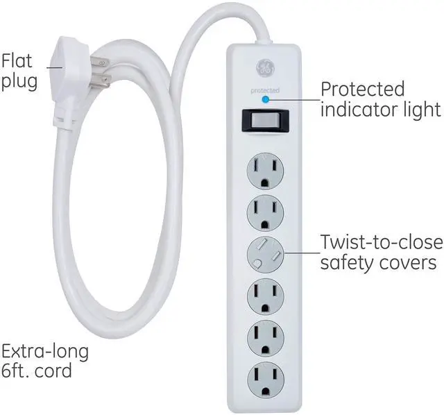 • Surge protection Features an 800J protection rating, an integrated circuit breaker to safeguard against overvoltage or overheating and a protected indicator light indicating electronics are safe and properly powered; 500V (L-N, L-G, N-G)